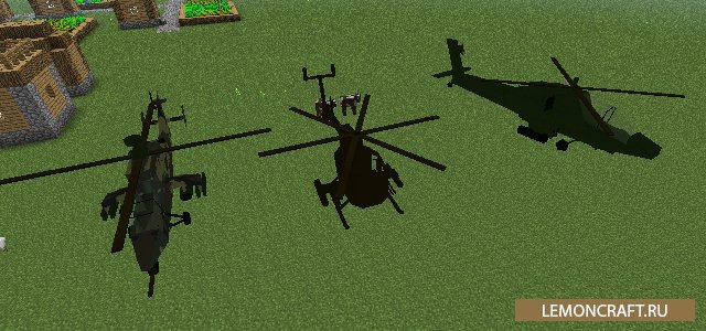 С модом MC Helicopter можно создать целый авиапарк в своем мире майнкрафт. С установкой этого мода будут добавлены различные самолеты и вертолеты. Все машины будут доступны для полетов, а также неплохо вооружены. Теперь вы сможете нападать на своих врагов с воздуха. Летать можно не только днем, но и ночью. Вся техника снабжена приборами ночного виденья. Крафт не очень дорогой, и вы сможете насладится полетами в самом начале игры.